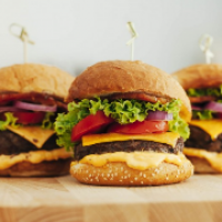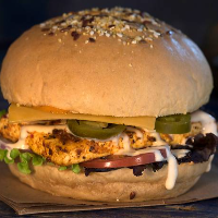 WARM BUNS SERVED WITH DOUBLE VEGGIE / CHICKEN PATTY, COLESLAW, LETTUCE, TOMATO, ONION, BURGER SAUCE, DOUBLE CHESSE & CHEESEY FRIES