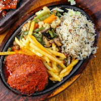 TWO TYPE OF FISH, TWO TYPE OF CHICKEN RICE FRIES S& HRY EGG, SERVED WHIT CHINESE SWEET & SPICY SAUCE,