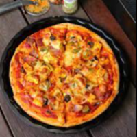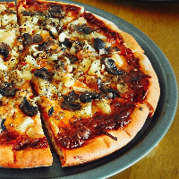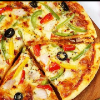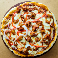 FRESH DOUGH PIZZA WITH HOME MADE BBQ SAUCE, VEGETABLE /CHICKEN & CHESSE
