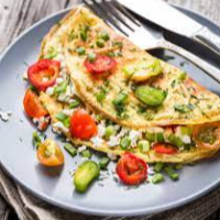 EGG, PARSLEY, TOMATO, GREEN PEPPER, GREEN ONION, OLIVEG, GRATED CHEESE