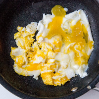 EGG COOKEDTO SMOOTH , SILKY EXTERIOR AND MOIST SOFT SCRAMBLED INTERIOR