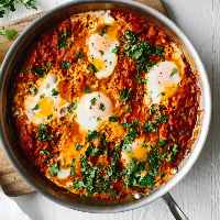 POACHED EGG, GARLIC, TAMTOS , ONION, BELL PEPPERS