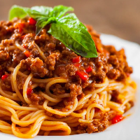 SPAGHETTI IN RED SAUCE WITH MUTTON MINCE AND ITALIAN HERBS AND RED WINE
