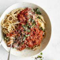 SPAGHETTI IN RED SAUCE WITH CHICKEN MINCE AND ITALIAN HERBS AND RED WINE