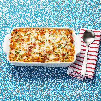 LAYERED LASAGNE SHEET STUFFED WITH VEGETABLE / CHICKEN TOPPED WITH CREAMY RICE