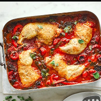 BONELESS CHICKEN COOKED IN CONCASSE SAUCE SERVED WITH EXOTIC VEGETABLE AND HERB RICE