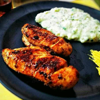 GRILLED CHICKEN MARINATED IN LABENESE SPICES SERVED WITH TOMATO SALSA AND HARRISHA SAUCE