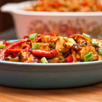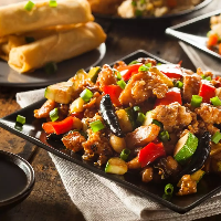 PANEER / CHICKEN BALLS AND EXOTIC COOKED IN THAI STYLE SWEET & SPICY SAUCE TOOPED WITH CRUSHED PEANUTS, SERVED WITH VEG FRIED RICE