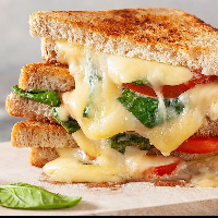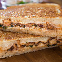 TOASTED SANDWICH BERAD WITH HOMEMADE MEXICAN SAUCE, BELLPEPPER, ONION, GRILLED CHICKEN & CHESSE SERVED WITH FRIES