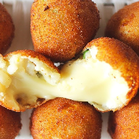 FRIED CHESSE STUFFED VEG BALLS SERVED WITH TWO CHEF CHOICE DIPS