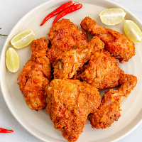 CHILLI CHICKEN SERVED WITH EGG FRIED RICE & KIMCHI SALAD