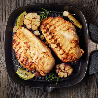 GRILLED CHICKEN BREAST COOKED WITH HOMEMADE BBQ SAUCE SERVED WITH EXOTIC VEGETABLE & POTATO WEDGES