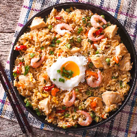 CHINESE STYLE RICE TOSSED WITH PRONS AND ASSORTED VEGGIES