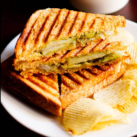 TOASTED SANDWICH BREAD WITH PANNER TIKKA CUBES, ONION, CAPSICUM & CHESSE, SERVED WITH FRIES