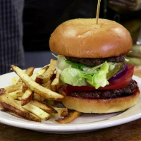 WARM BUNS WITH CHICKEN PATTY, CHEF SPECIAL HONEY MUSTARD COLESLAW, POTATO ONION, TOMATO , CHESSE, SERVED WITH FRIES