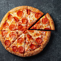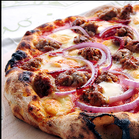 FRESH DOUGH PIZZA TOPPED WITH BASIL MARINATED SAUCE, PEPRONI SLICE, ONION SLICE, ONION & CHESSE