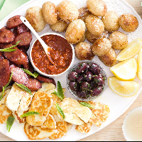 FRESH POTATO FINGERS COATED IN CORNFLOUR, PAN SAUTED IN BUTTER , CORIANDER AND GARLIC