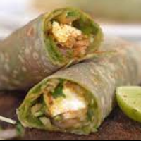CORN TORTILLA STUFFED WITH ROASTED FISH, MINT SAUCE , LACHCHA ONION SERVED WITH TARTAR & MINT SAUCE