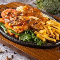 CHICKEN PATTY IN CHEESE SAUCE GRILLED SLICED CHICKEN IN DEMI SAUCE CHICKEN FINGER PANKO | EXOTIC VEGGIES FRENCH FRIES